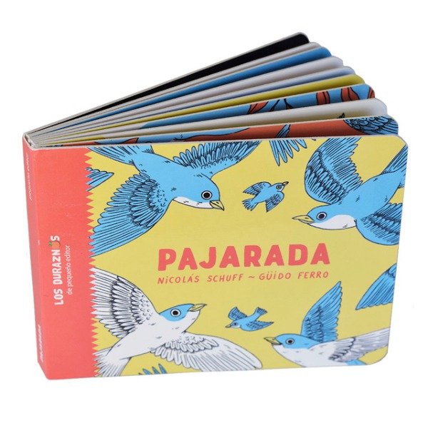 Pajaritos en bandada, en los cables, en las ramas. Pájaros en la cabeza, en los oídos, en los sueños. Con una rima impecable y un precioso contrapunto entre el realismo y la metáfora, Nico Schuff construye este poema que dirige nuestra mirada a los grandes protagonistas de la mirada infantil: los pájaros. Las ilustraciones de Guido Ferro terminan de conformar esta invitación a la ensoñación risueña y al juego.